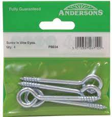 Screw In Steel Vine Eyes (Pack of 4) 75mm x 12mm
